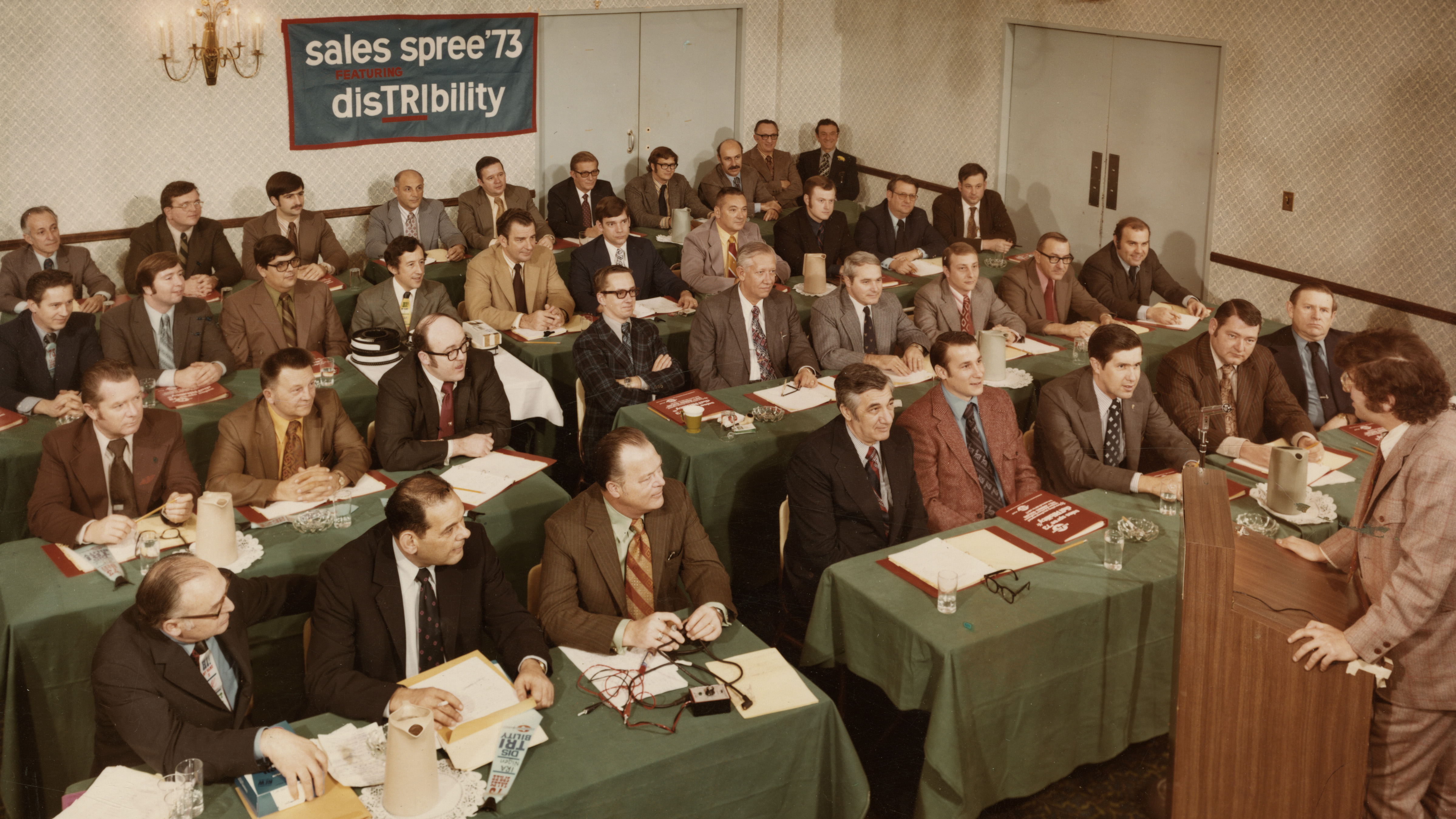 Larry Sills addresses the SMP sales force at the 1973 National Sales Meeting. SMP is well on its way to meeting Elias Fife's original vision that Standard would have "a sales force second to none."
