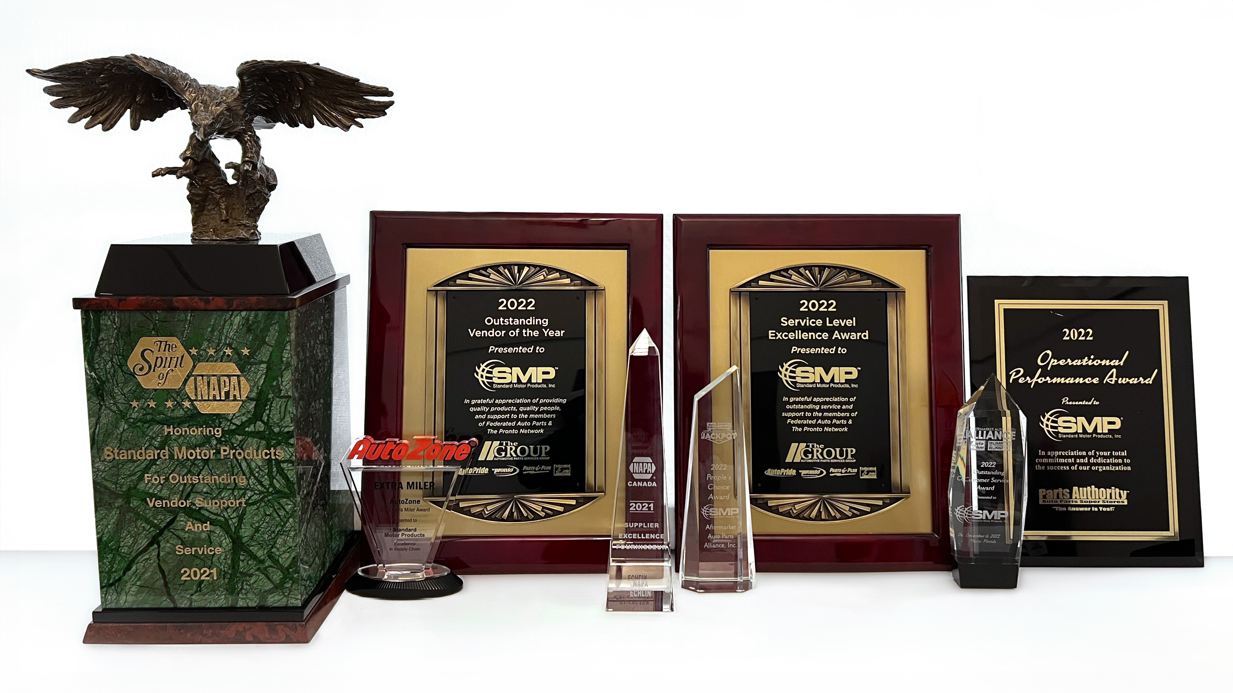 SMP receives numerous awards including the Spirit of NAPA Award; O'Reilly Auto Parts Supplier of the Year and Technical Training Awards; AutoZone Extra Miler; Aftermarket Auto Parts Alliance Outstanding Customer Service and People's Choice Awards; Automotive Parts Services Group Outstanding Vendor of the Year; Parts Authority Operational Performance; and NAPA Canada Supplier of the Year.